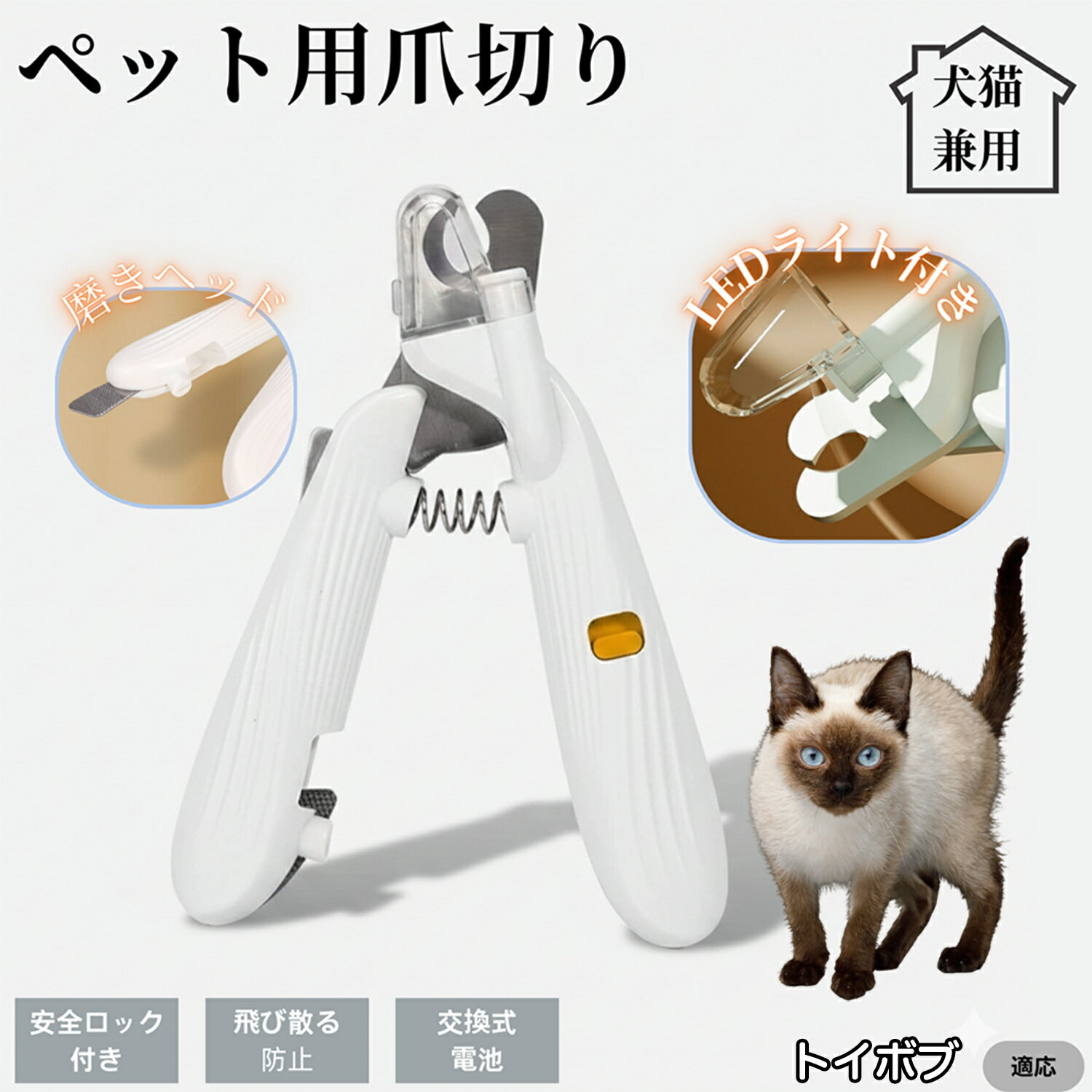 爪切り ペット 猫 犬 兼用 LEDライト付き 深爪防止 血管がよく見える 安全設計 爪やすり一体型・・・