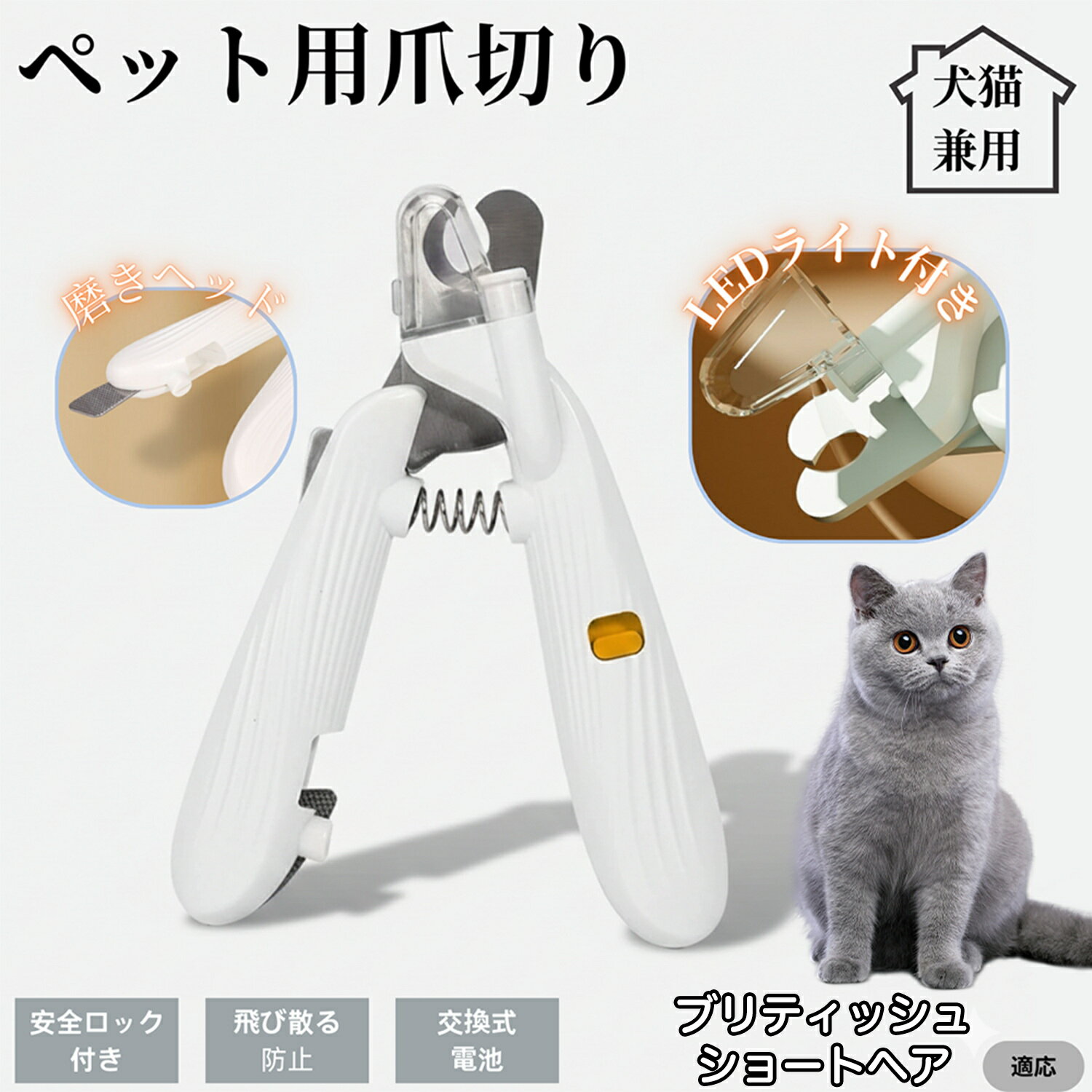 ペット 爪切り 犬 猫 ネイル トリマー 使いやすい 光る LED 簡単