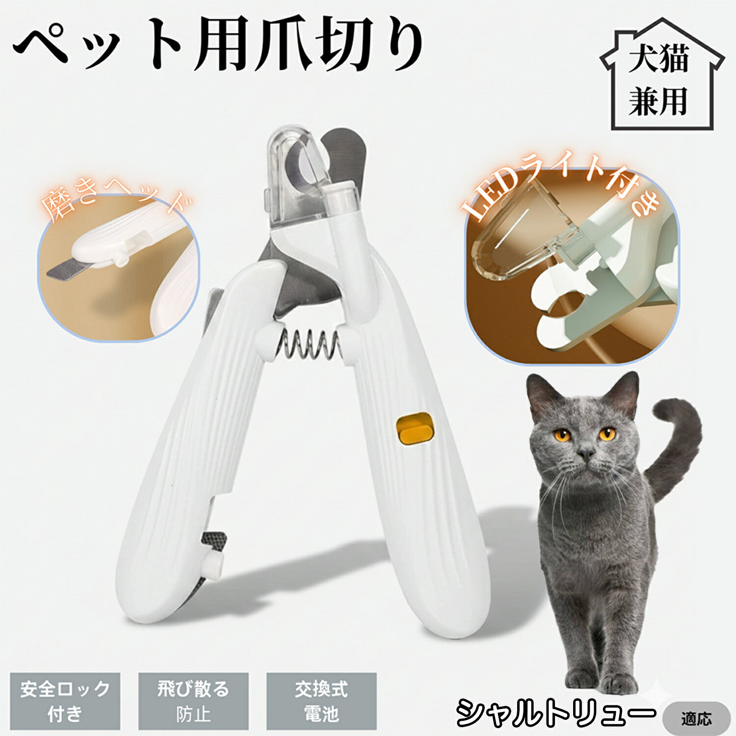 ペット 猫ちゃん 爪切り 子猫 ペット用爪切り LEDペット用爪切り 小型 中型 犬 猫 適用 清掃用品