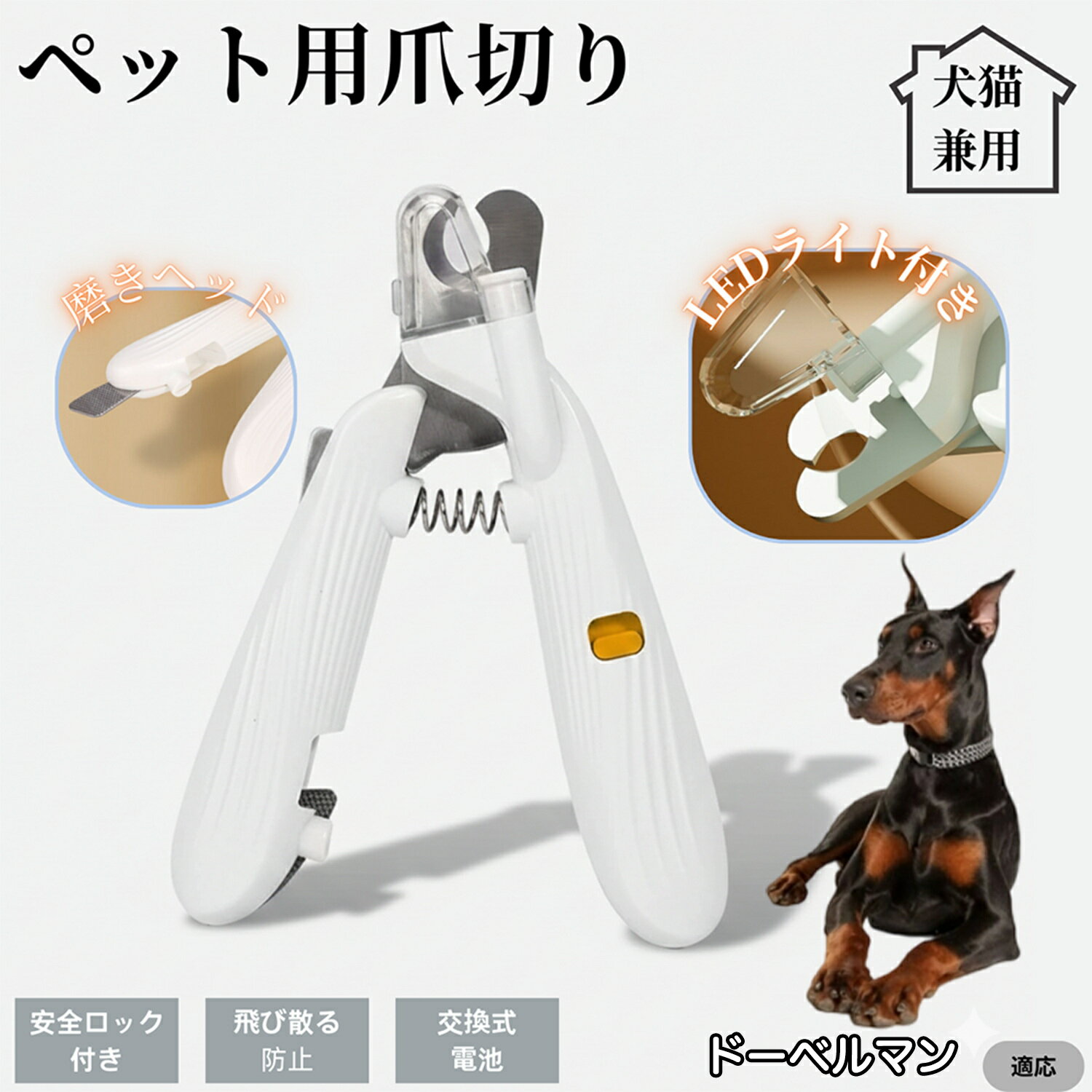 一台で解決!LED付きで見やすいペット用爪切り 愛犬や愛猫の定期的な爪切りをご自宅で簡単に!初心者の人でも使いやすい