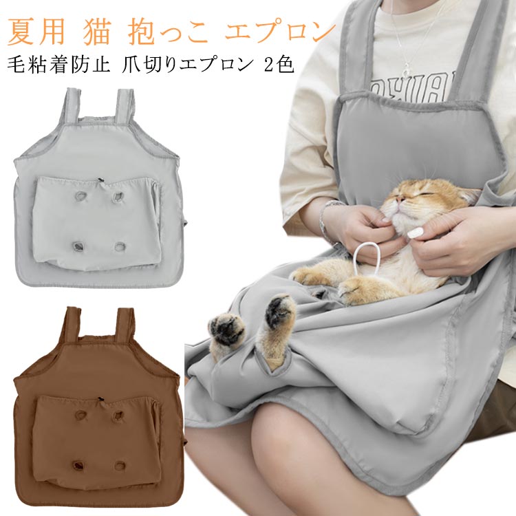 夏用 猫エプロン 抱っこ 爪切り ペット猫寝袋 抱っこ用エプロン 前掛け ポケット 猫 ニャンコ 小・・・