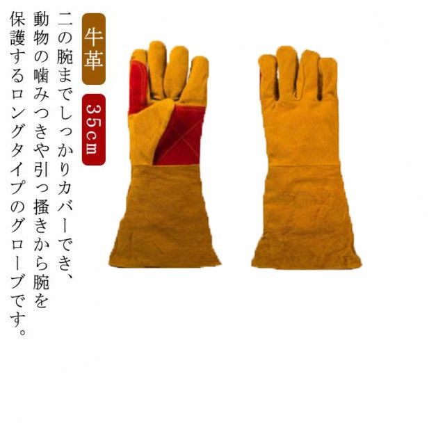 グローブ ペット 噛みつき 防止 牛革 全長35cm キャメル 害虫駆