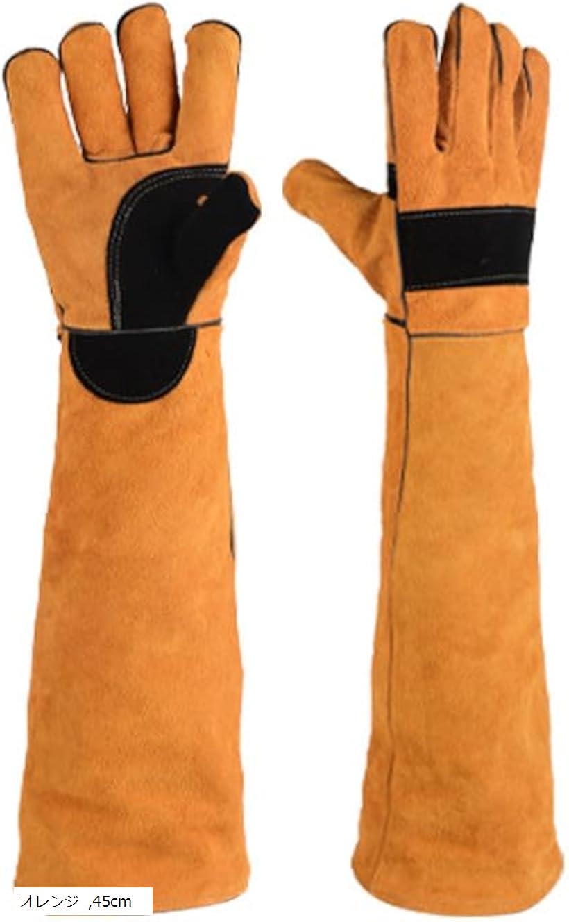 ペットグローブ 犬 噛みつき防止 猫 爪切り対策 アウトドア 園芸 牛革 (オレンジ, 45cm)・・・