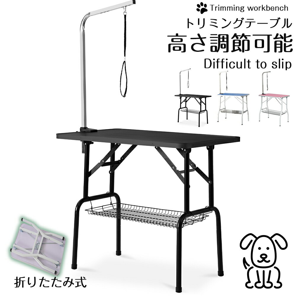 トリミングテーブル 収納カゴ付 折りたたみ トリミング台 H型アーム棒 頑丈型 多頭 トリミング 折り畳み ペット用 シャンプー カット ブロー ブラッシング 爪切り バリカン お手入れ