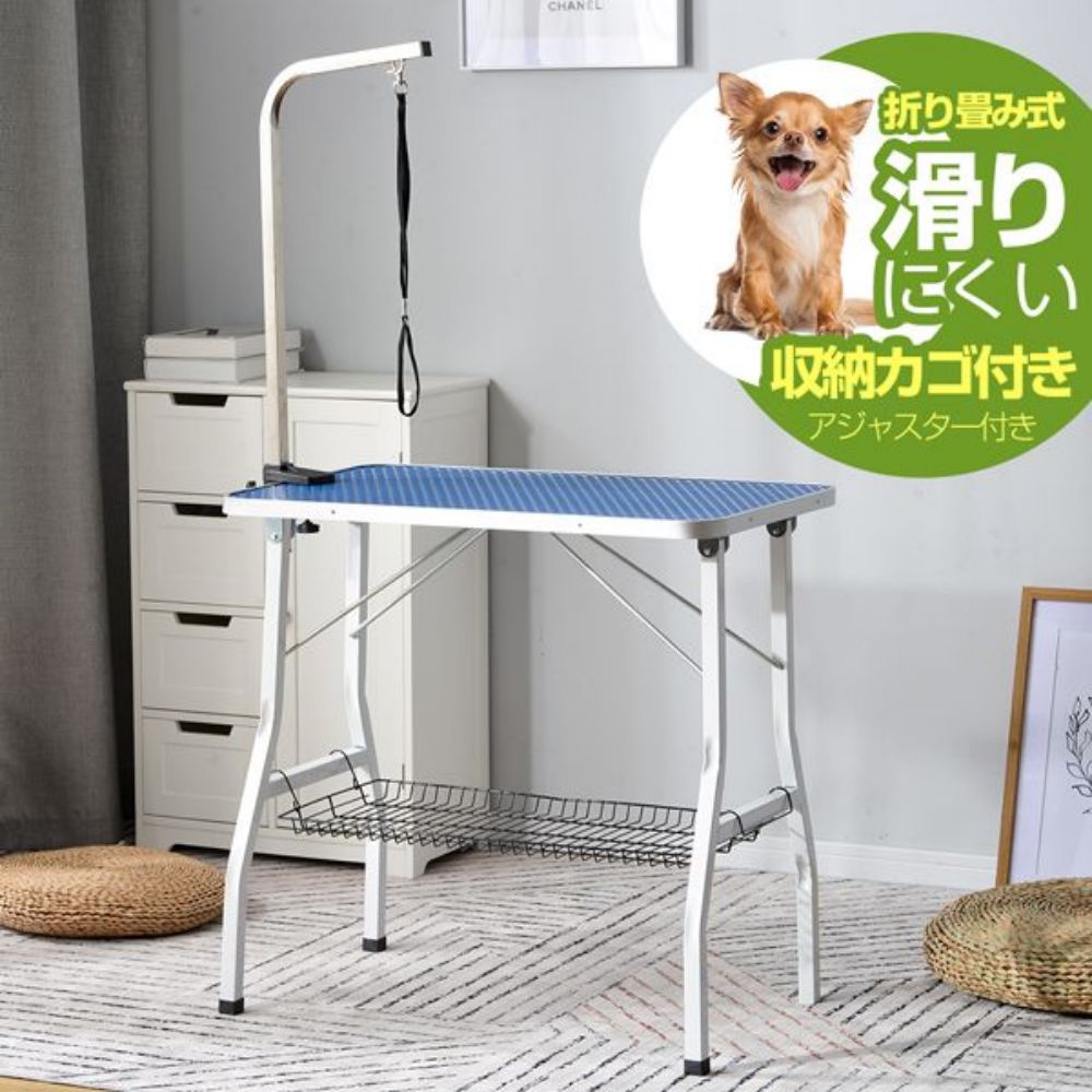 トリミングテーブル 収納カゴ付き 折りたたみ トリミング台 トリミング 折り畳み ペット用 シャンプー カット ブロー ブラッシング 爪切り バリカン お手入れ トリマー 小型犬 中型犬