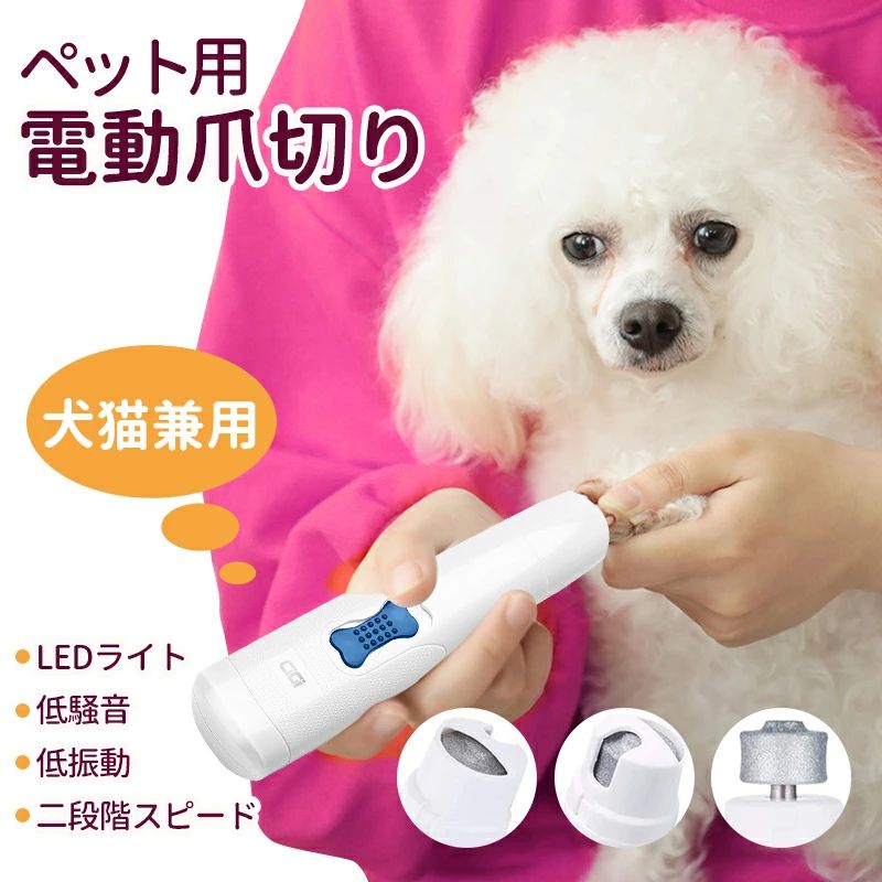 犬用爪切り ペット用 LEDライト付き 電動爪やすり 爪削り 電動爪トリマー ネイルケア ネイルグラインダー 小型犬 中型犬 大型犬 爪研ぎ器 スピード三段階調整 USB充電式 安全 低騒音