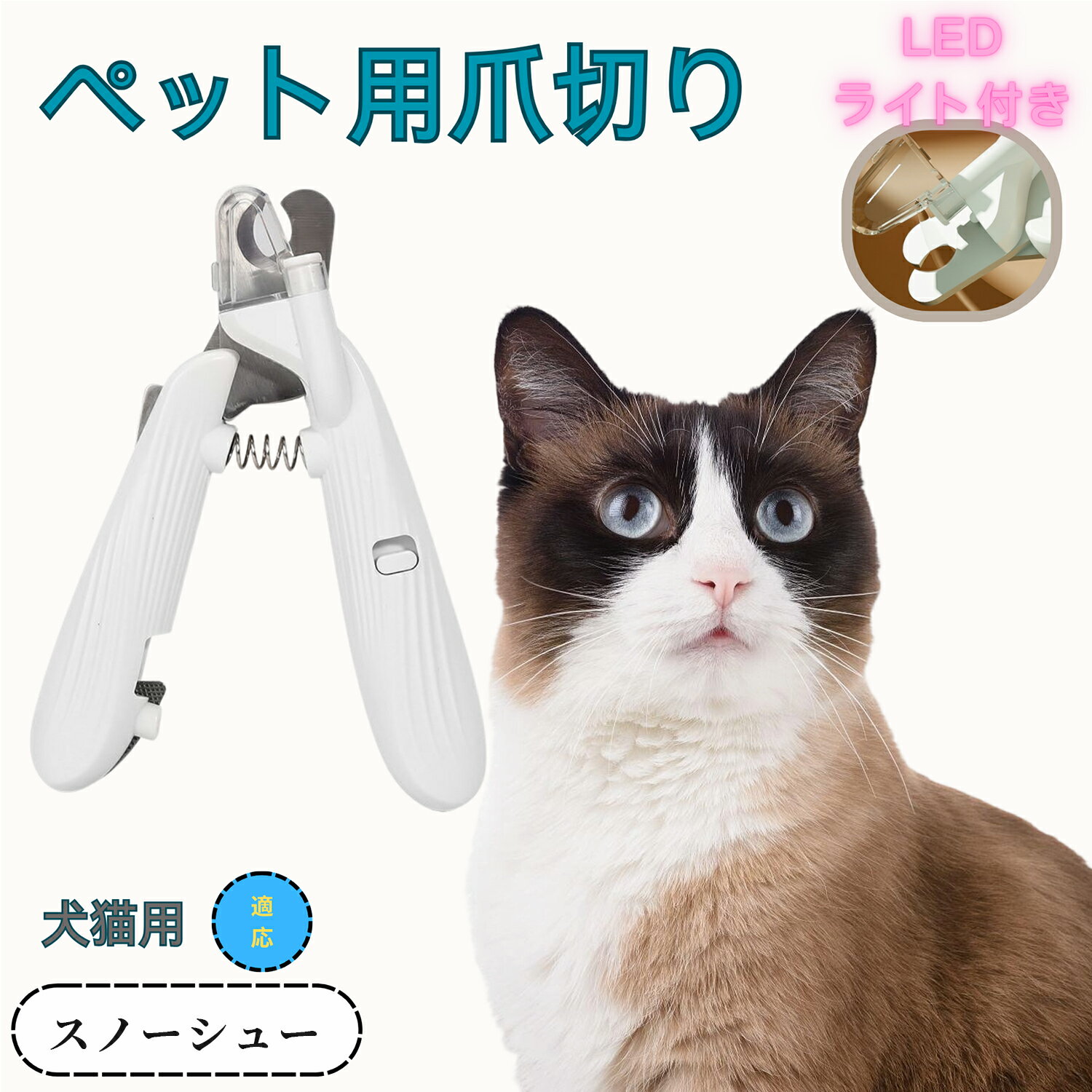 【5倍ポイント】スノーシュー ペット用爪切り 犬猫爪切り LEDライト付き 犬 爪切り つめきり猫用・・・
