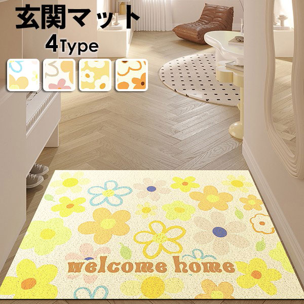おしゃれな玄関マット!室内も屋外もOK★ 4カラー 玄関 マット 屋外 オシャレ ベランダ 勝手口 室内 ドアマット 可愛い 花柄 ラバー ゴムマット カーペット ラグ 泥落とし 滑り止め