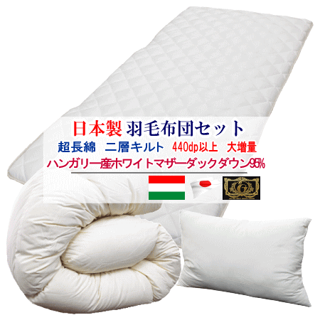 羽毛布団セット 布団セット シングル 日本製 プレミアムゴールド 二層キルト ハンガリー産ホワイトマ・・・