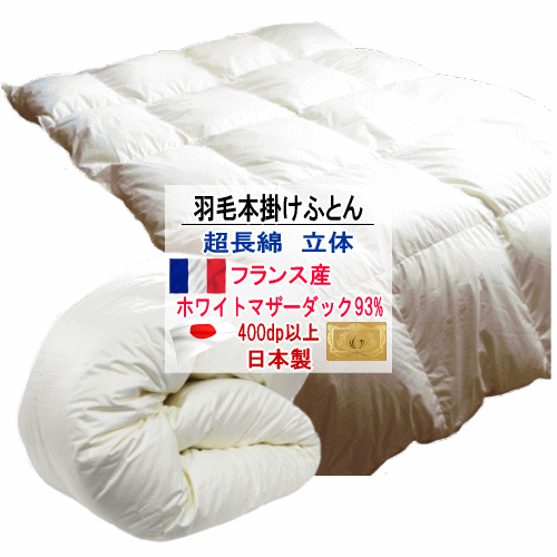 羽毛布団 掛け布団 フランス産ホワイトマザーダックダウン 93% ロイヤルゴールラベル 超長綿 綿1・・・