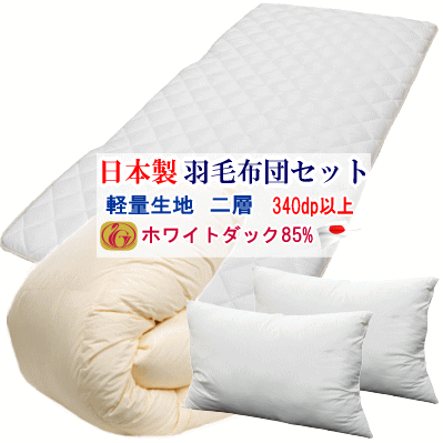 羽毛布団セット 布団セット 羽毛布団 ホワイトダック85% 二層キルト ニューゴールドラベル 敷布団・・・