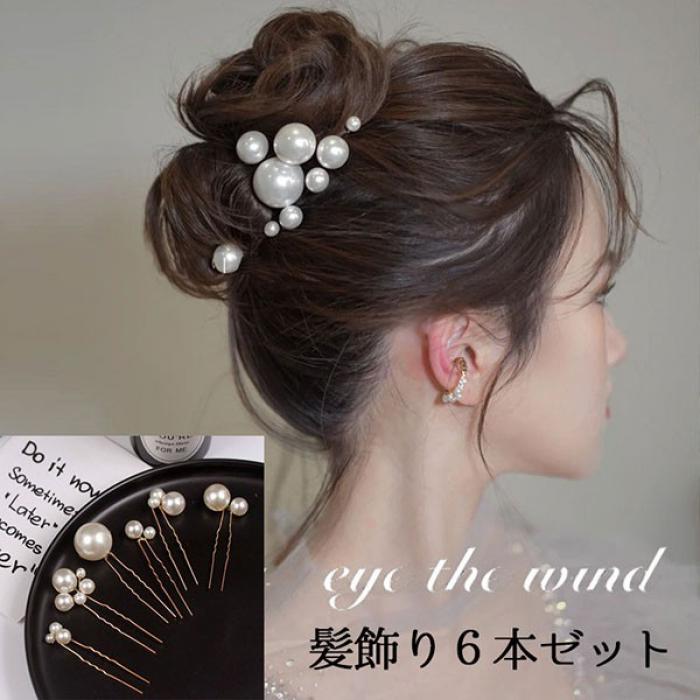 ヘアピン (h202#) 当日発送 2color 5点セット 髪飾り かんざし 簪 パール 結婚式 ・・・