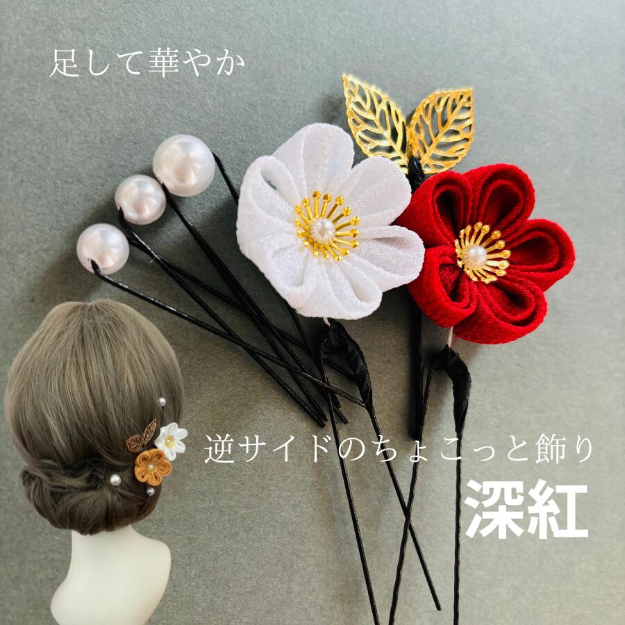 【29.30日限定クーポン★配布中】髪飾り 浴衣 赤 ピンク パール 深紅 つまみ細工 深紅小さい ・・・
