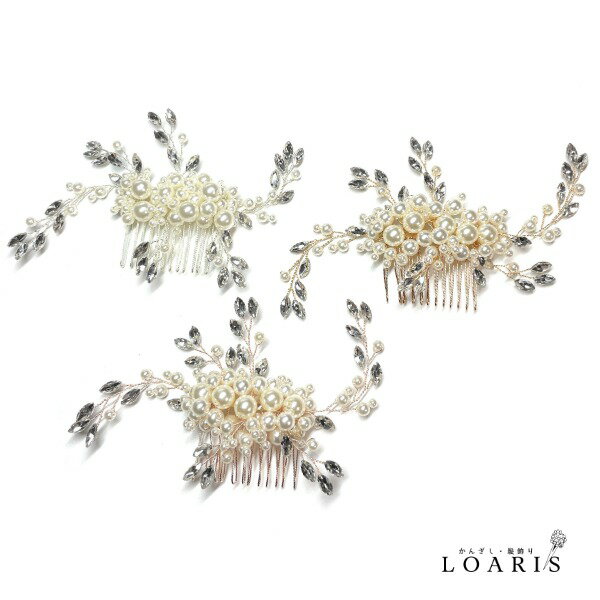 髪飾り コーム型 留袖 黒留袖 色留袖 50代 ラインストーン パール シルバー 白 キラキラ ラメ リーフ 葉 円 丸 サークル 小さい かんざし かわいい 粋 日本製 おしゃれ 上品 華奢 髪型 ヘ