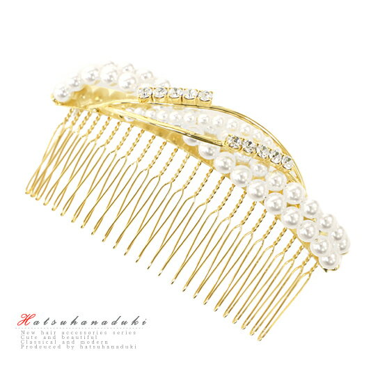 髪飾り かんざし パール 50代 留袖 黒留袖 色留袖 ゴールド コーム ラインストーン おしゃれ かわいい 洋装 日本製 フォーマル ヘッドドレス 上品