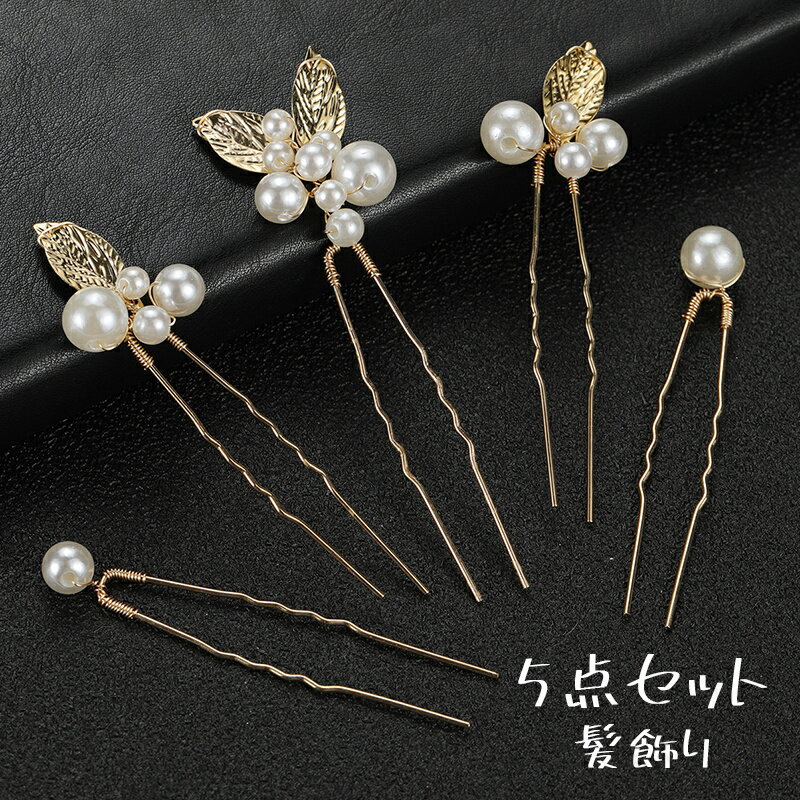 h175#髪飾り Uピン パール 5点セット 当日発送 ヘアアクセサリー 真珠 髪留め かんざし 結・・・
