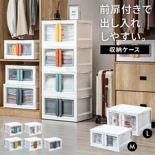 中身が見える 簡単組み立て 全5色 2サイズ 便利な前開き、重ねて並べてレイアウト自由自在 移動ラクラク キャスター付き ペットボトル 保存食 収納 部屋整理におすすめです!