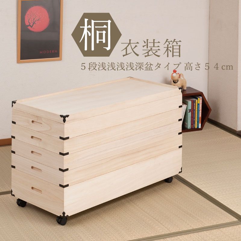 キャスター付き桐衣装箱 5段 高さ54 隅金具付・・・