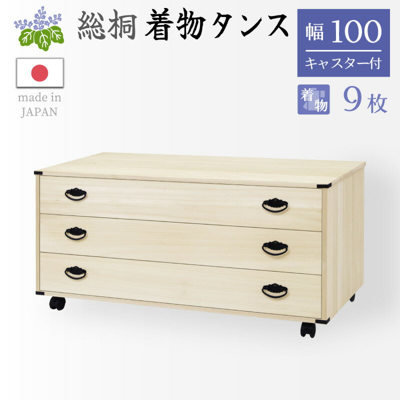 国産 総桐箪笥 ロウ引き仕上げ タトウ紙 引き出しとめ造り 湿気 カビ 防止 桐チェスト キャスター 桐たんす3段 着物9枚 衣類収納 衣装収納 整理たんす タンス 箪笥