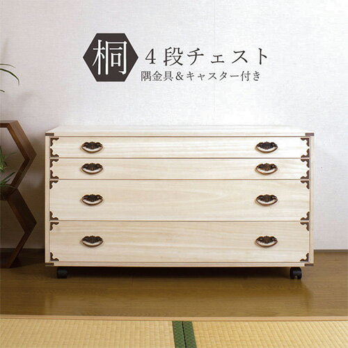桐タンス 4段 キャスター付き 着物収納 衣装ケース 衣類収納 チェスト タンス たんす 和風箪笥 ・・・