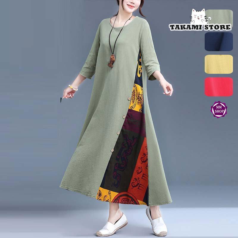 ワンピース ロングワンピース ミディ丈 ヘンリー 花柄 中華風 長袖 ロング レディース クラシック・・・