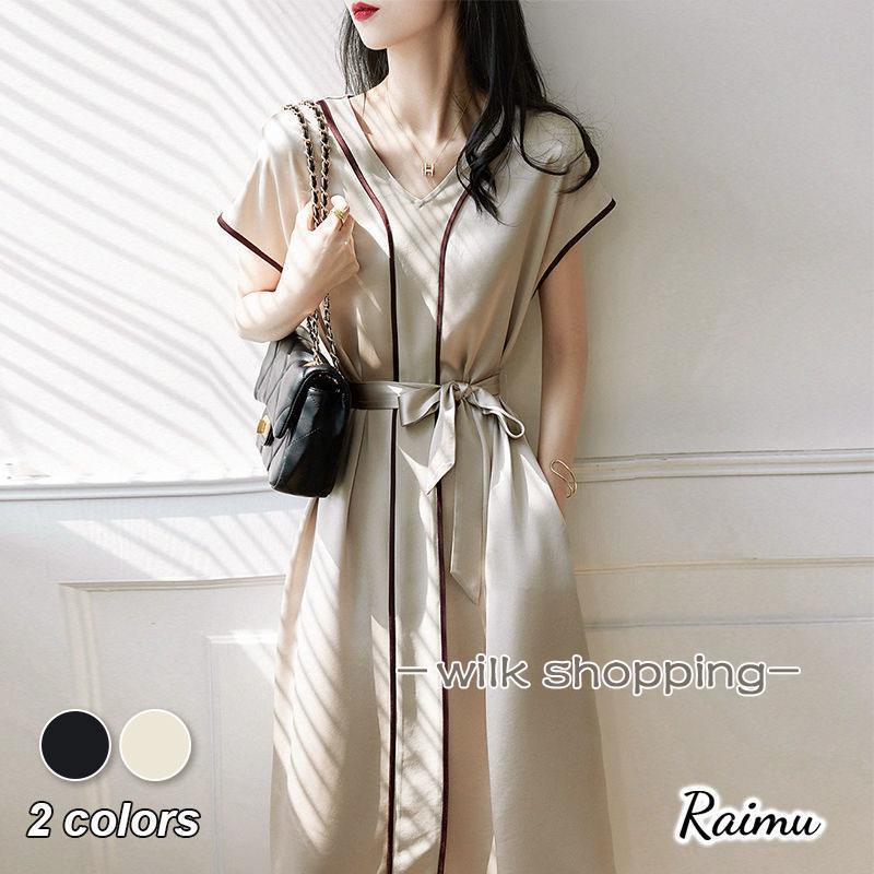 ワンピース レディース 40代 キレイめ 膝丈ワンピース 春夏新作 半袖ワンピース Vネックワンピー・・・