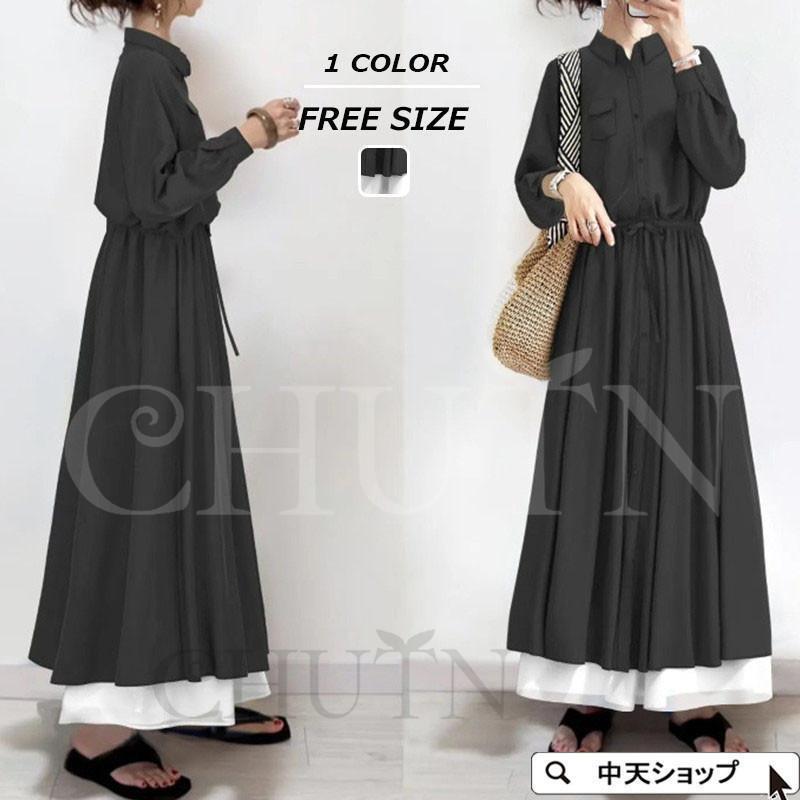 ワンピース シャツワンピース レディース ワンピース マキシ丈 ロングシャツトップス 春秋服 個性的・・・