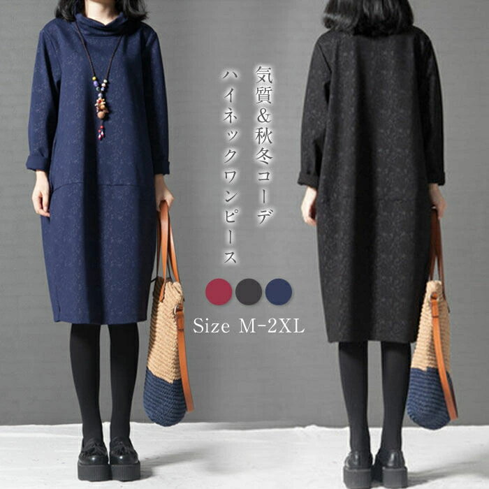 ★ 送料無料 ★ ワンピース レディース 長袖 秋 ロングワンピース 大きいサイズ 膝丈ワンピース 膝下丈 ゆるシルエット ロング丈 ゆったり 体型カバー 大人