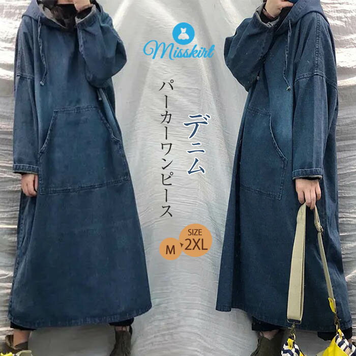 【送料無料◎宅配便発送】パーカーワンピース デニム ワンピース レディース ロング ワンピース フード付き パーカー ワンピース 長袖 ロング丈 ロングワンピース ミモレ丈 春 秋