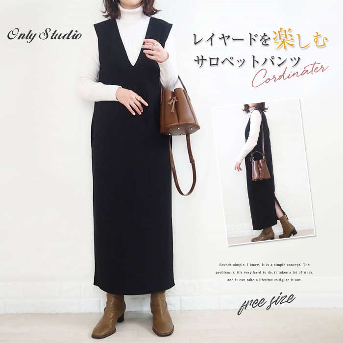 【送料無料◎宅配便発送】ベスト ワンピース ノースリーブ ジャンパー スカート ロング ワンピース サロペット ワンピース レディース ロング丈 Vネック ゆったり 通勤 OL 重ね着 秋 冬