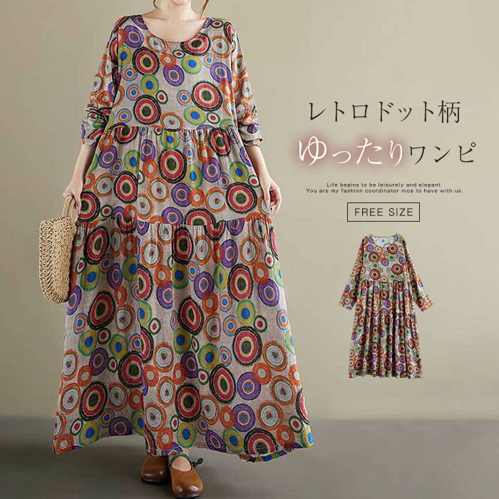 ワンピース レディース ロング ロングワンピース ロング ワンピ ゆるっと Aライン 新作 春 夏 秋 長袖 花柄 ドット柄 プリント