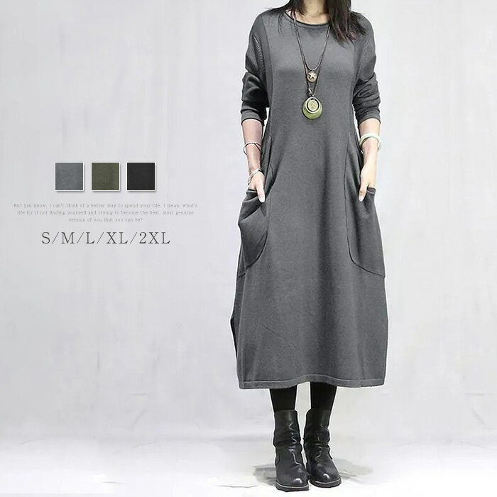 ワンピース レディース 秋冬 ロングワンピース ロング カジュアル シンプル お洒落 着痩せ 通勤OL 20代 30代 40代 50代