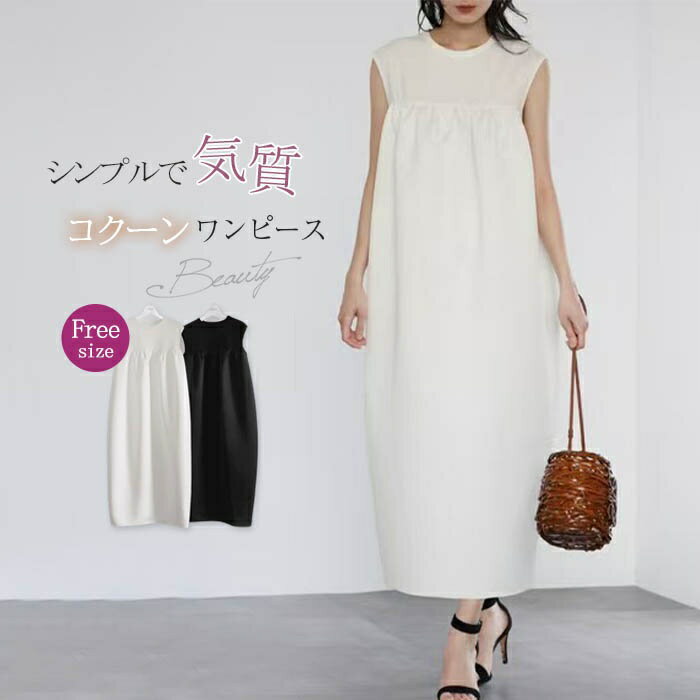 ★ 送料無料 ★ワンピース コクーンワンピース レディース ノースリーブ 夏 ロング丈 ロングワンピース Aライン コクーン ワンピース 着痩せ 無地