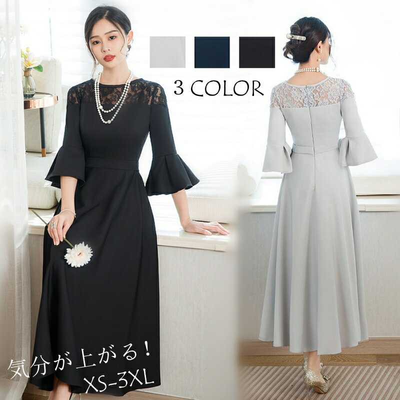 ロングドレス パーティードレス 結婚式 ワンピース オケージョンドレス フォーマル レース フレア袖・・・