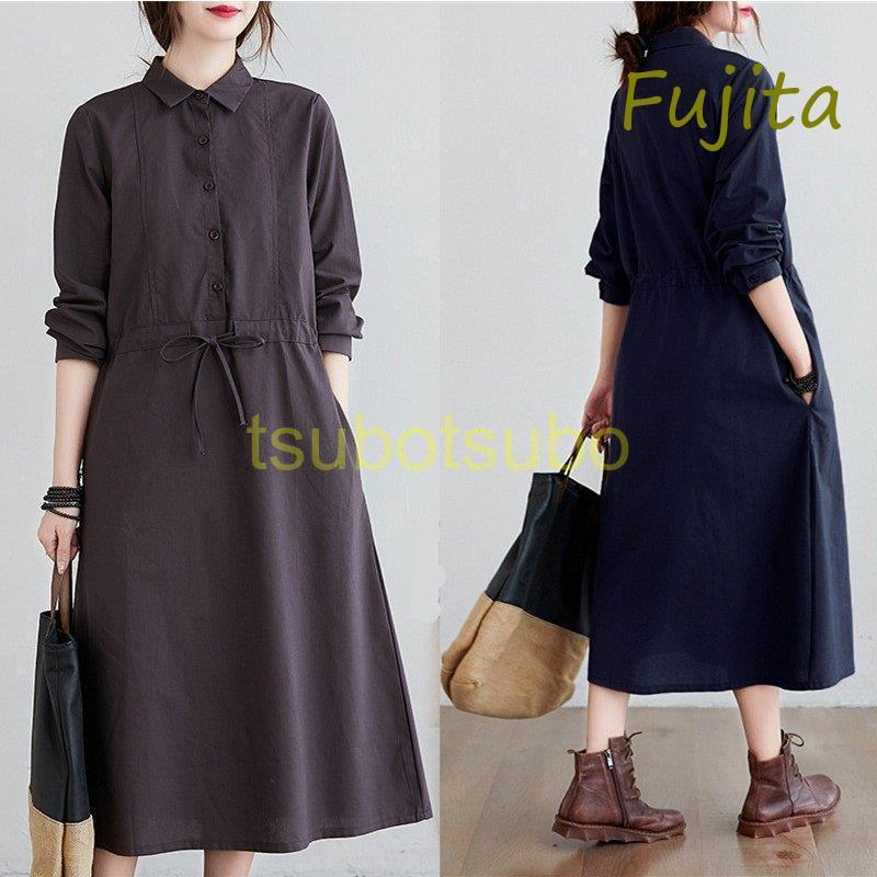 ワンピース シャツワンピース プルオーバー 長袖 レディース 春 秋