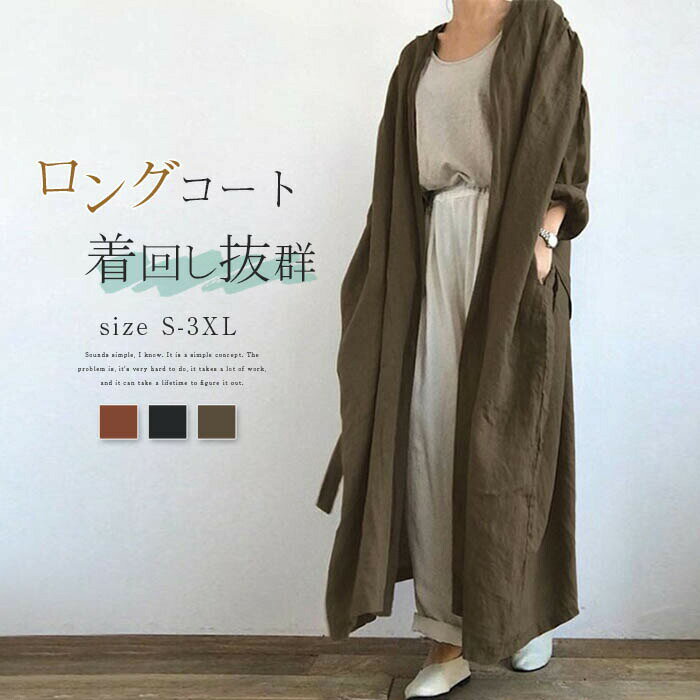トレンチコート レディース 春秋 ロング丈 アウター 春 秋 綿麻 スプリングコート ビジネス スーツ 卒業式 通勤 カジュアル 韓国風 上品 着痩せ 20代 30代 40代 50代