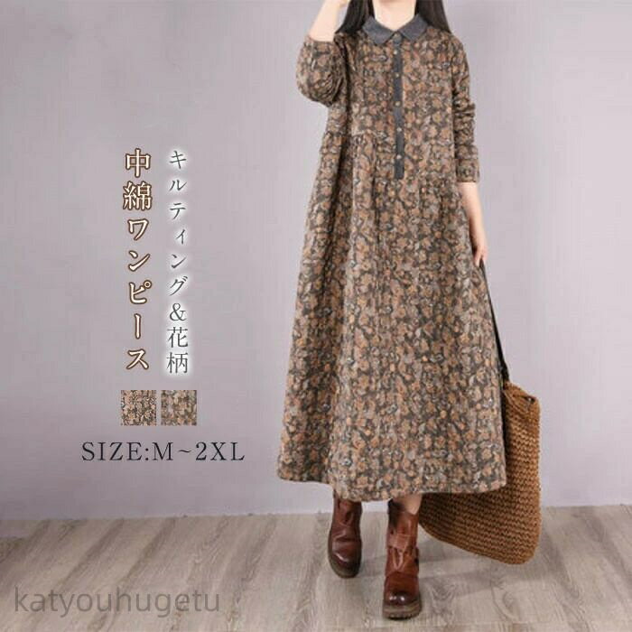 【時間限定10%OFFク一ポン】【送料無料】キルティング ワンピース 長袖 40代 秋冬 レディース・・・