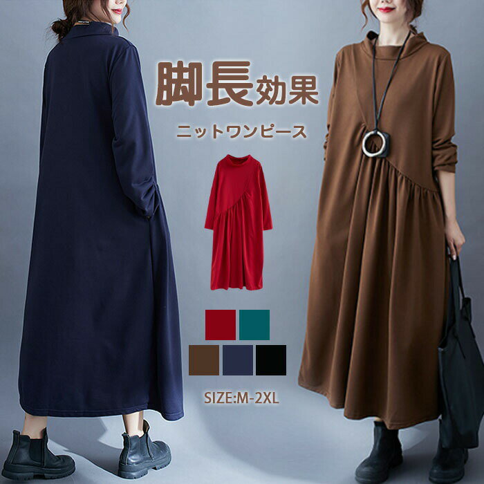 ロングワンピース レディース おしゃれ カジュアル ミモレ丈 ニット ワンピ ドレス エレガント 上・・・