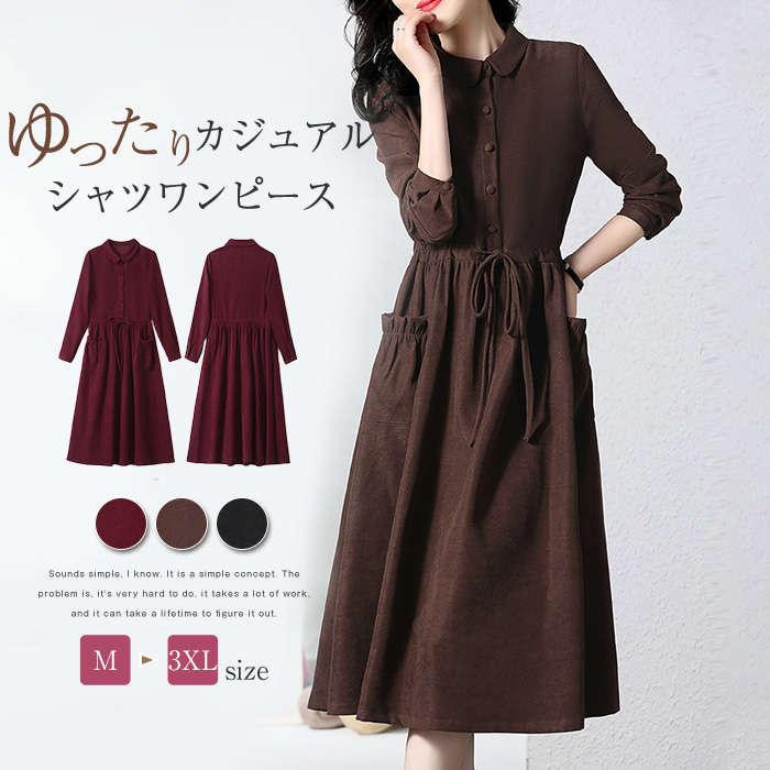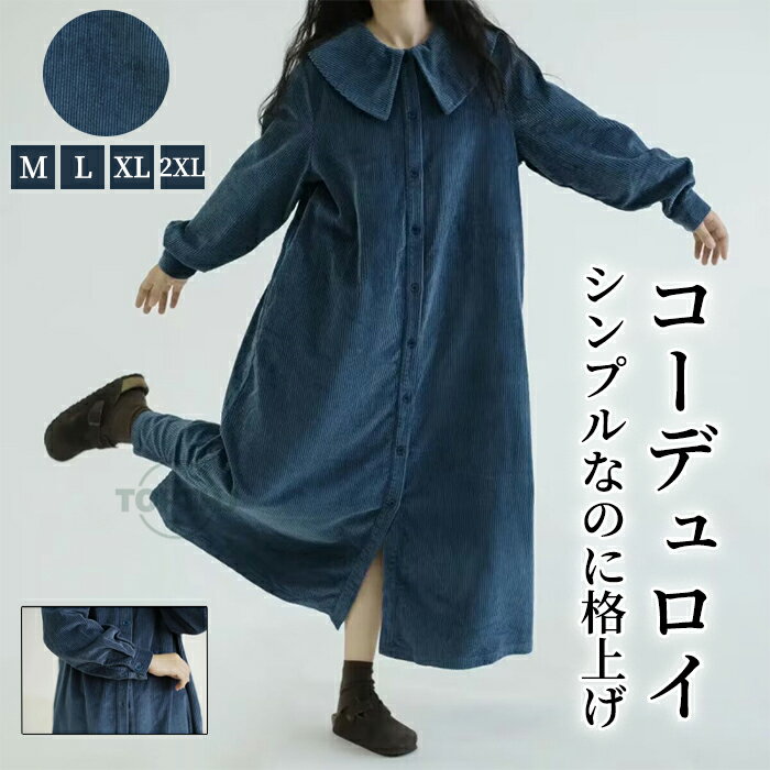 【期間限定 10% OFF クーポン 】ロングワンピース コーデュロイ レディース ワンピース 前開・・・