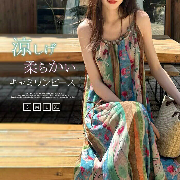 ★ 送料無料 ★ワンピース キャミソールワンピース マキシワンピース レディース 夏 ノースリーブ ロングワンピース 総柄 フレア 秋 春 ワンピ