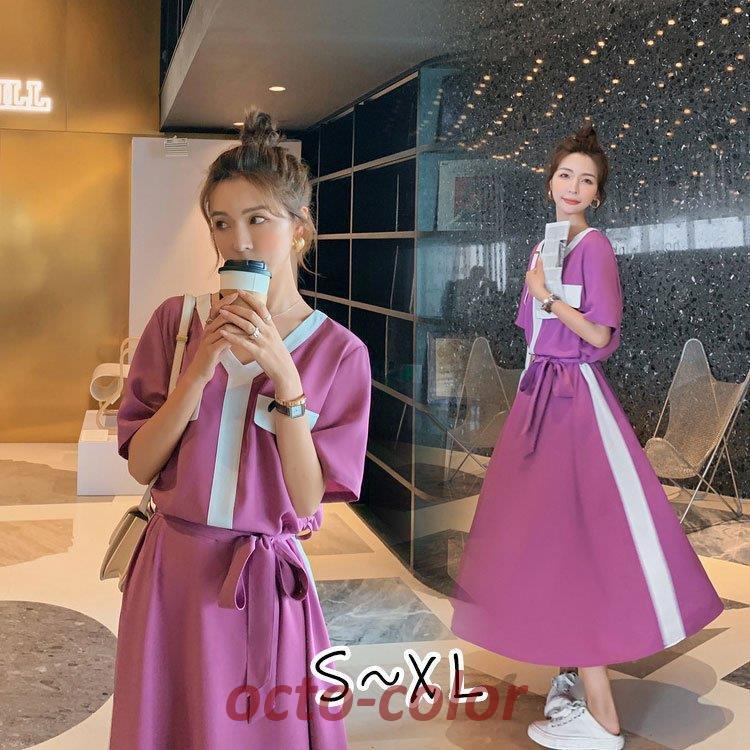 【送料無料】ワンピ Aライン ベルト付き ロング フレア おしゃれ