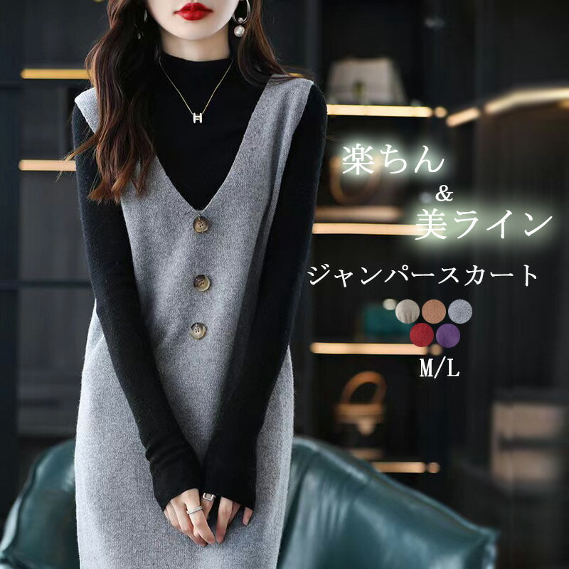 ワンピース ロングワンピース ニットワンピース レディース ジャンパースカート 秋冬 ベスト ロング・・・