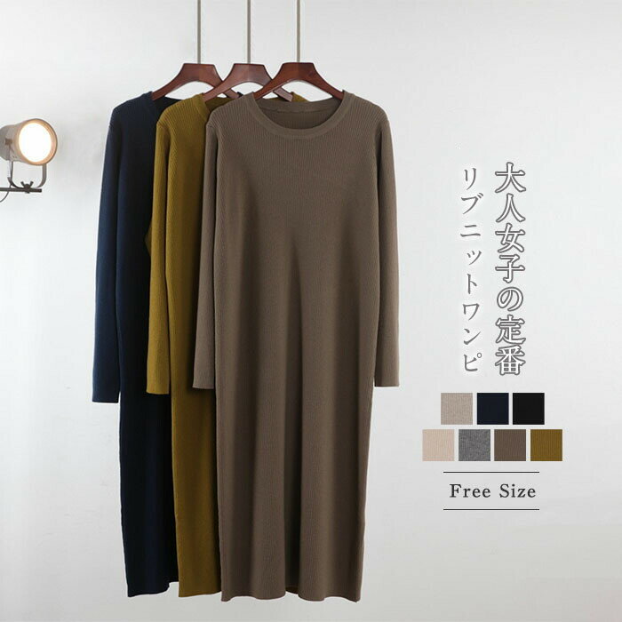 ニットワンピース 冬 ワンピース ミモレ 秋冬 ニット ワンピース 40代 長袖 リブニット ニットワンピー 無地 大人 カジュアル 送料無料 通勤 オフィス 着痩せ 着回し