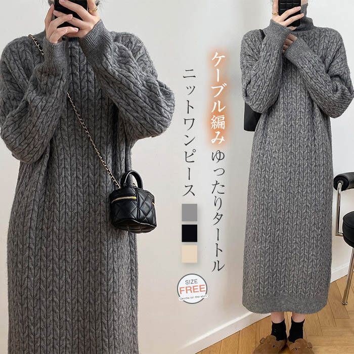 タートルネック ニットワンピース レディース ハイネック ニット ワンピース ロング丈 秋冬 冬 ゆったり ロング ニットワンピ 体型カバー 大人 春 秋 冬 シンプル 大人 カジュアル