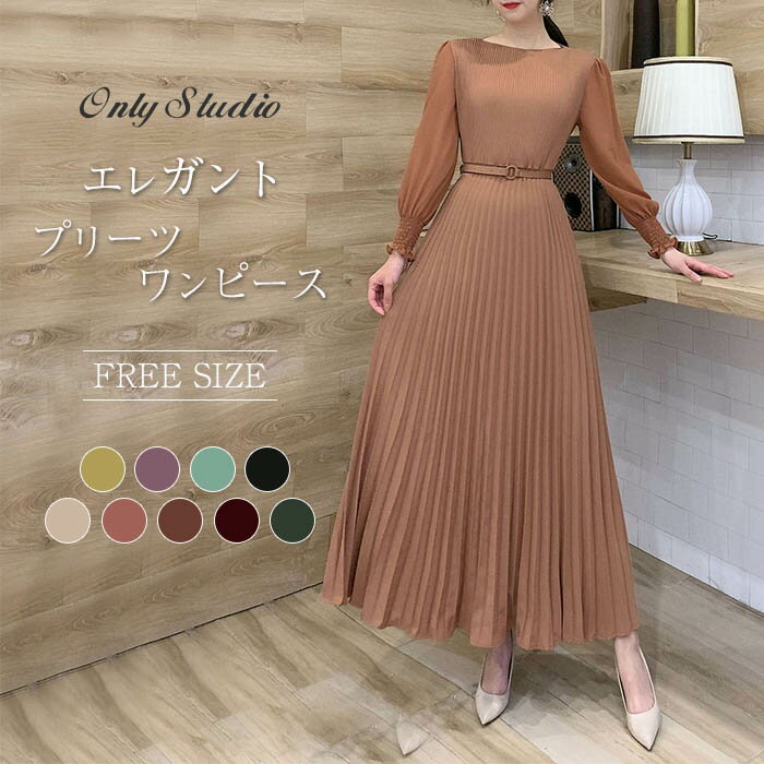 【送料無料◎宅配便発送】プリーツワンピース ワンピース 長袖