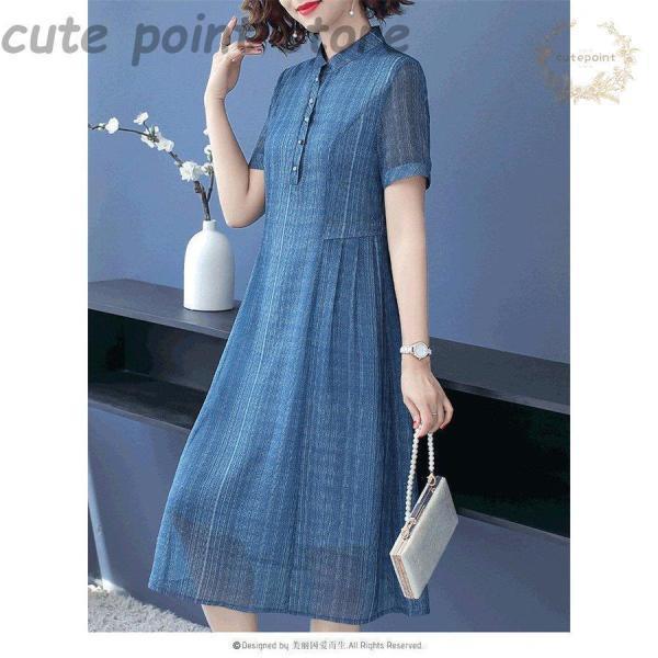 ワンピース レディース 半袖 新作 50代 40代 体型カバー 着痩せ カジュアル ストライプ ハイ・・・