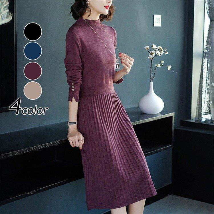【送料無料◎宅配便発送】ニット ワンピース レディース ロング ワンピース タイトワンピース ニットワンピース ロング丈 タイト 長袖 ハイネック 秋 冬 おしゃれ 着痩せ フォーマル