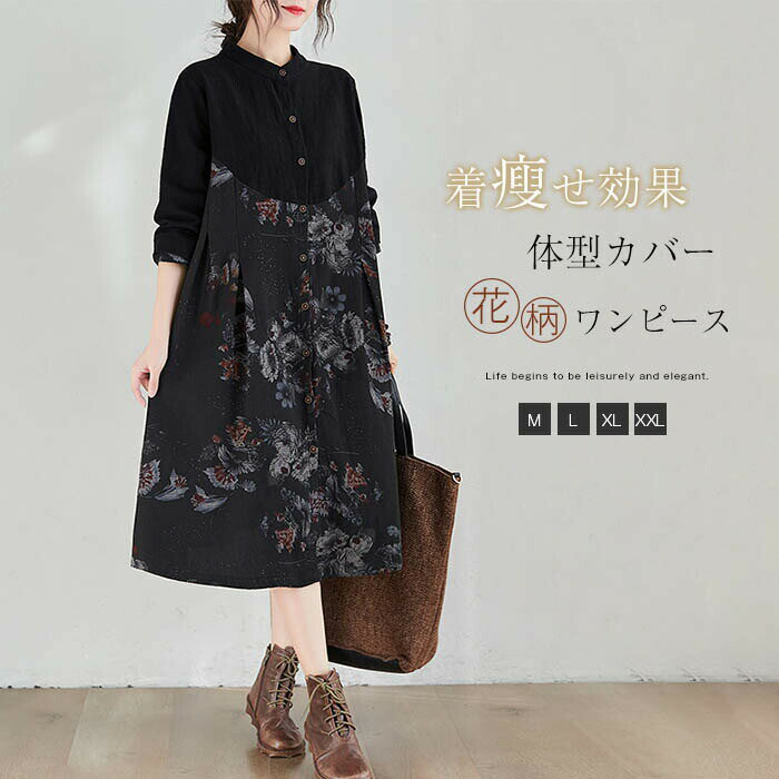 花柄ワンピース 花柄 秋 冬 旅行 ワンピース レディース 夏 立て