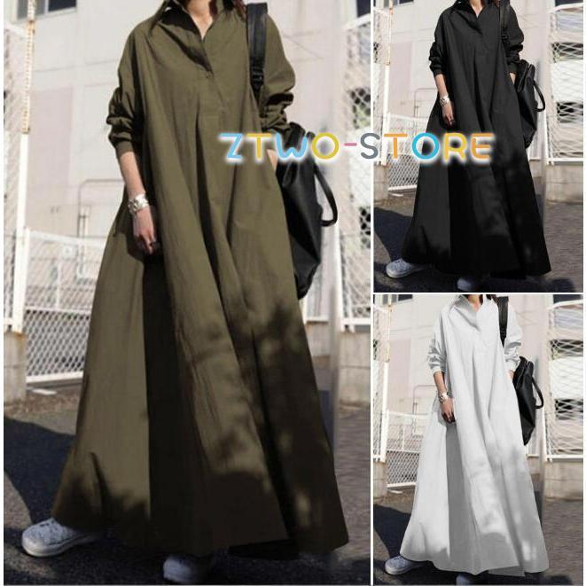 ワンピース レディース ロングワンピース 春秋 長袖 ロング丈 マキシ丈 体型カバー 無地 ゆったり・・・