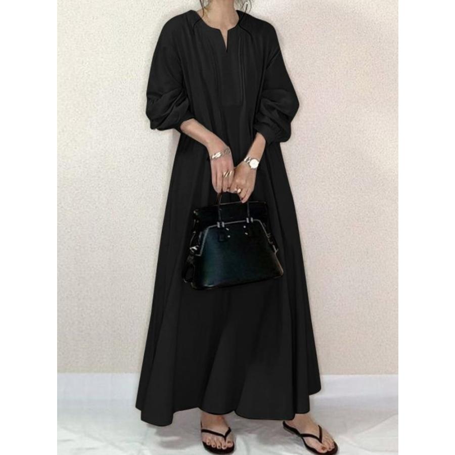 マキシワンピース ロングワンピース レディース 大きいサイズ ワンピ 無地 ワンピース 春秋 30代・・・